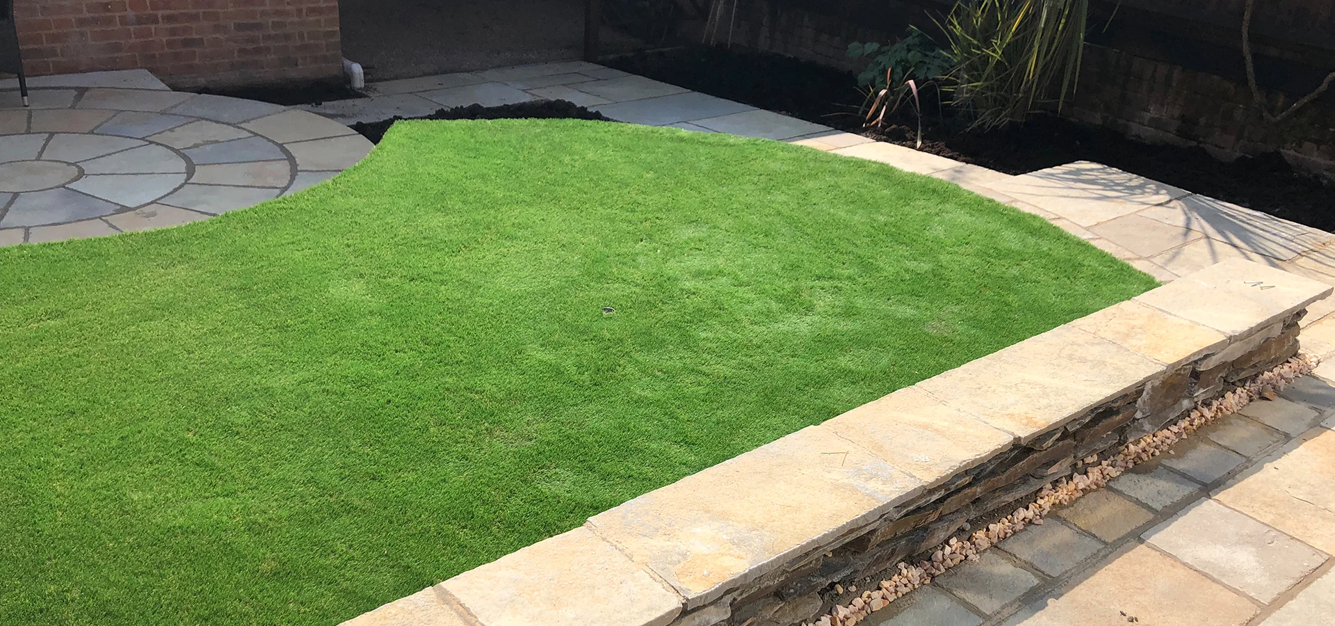 To complement the stone design, we incorporated fresh turfing to introduce lush greenery, creating a soft and inviting contrast against the hardscape elements. The new lawn area adds a sense of openness and is perfect for leisurely activities or simply enjoying the outdoors. Surrounding the garden, we constructed a small but sturdy wall, providing both structure and a sense of enclosure while maintaining an open and welcoming feel. This thoughtfully designed garden now offers a peaceful retreat, perfectly suited to the compact space and the client’s desire for a low-maintenance yet stylish outdoor area.